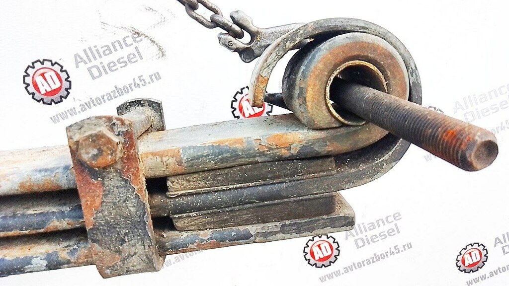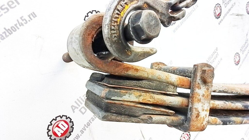На главную / ДЕТАЛИ Б/У / Подвеска / Ресивер / рессора в сборе 3х лист. б/у \ Втулки разбиты, разбито одно посадочное.